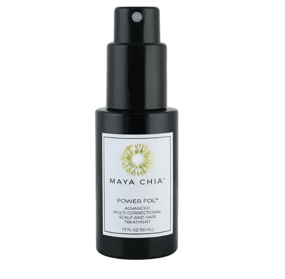 The Power Fol™ Advanced Multi-Correctional Scalp and Hair Treatment is a patent-pending, fast-absorbing formula designed to deliver powerful results without weight. This ultra-light infusion features Maya Chia’s proprietary blend of multiple peptide sources, amino acids, vegetable-derived collagen, high-quality antioxidants, fermented minerals, phyto-actives, and adaptogens, all selected to support the scalp and hair at a cellular level.