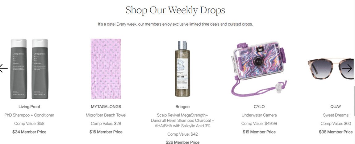 Additionally, FabFitFun offers weekly drops for subscribers, where you could purchase products with exclusive discounts. If you spring for the annual subscription, you would also receive early access to weekly drops and other exclusive sales.