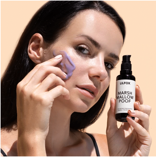 Lilfox Marshmallow Poof is a unique blend that contains a rich assortment of peptides that can help to fill, firm, and plump the skin and improve skin barrier function.