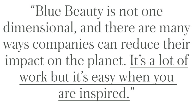 JR: I would describe Blue Beauty as brands who are investing and sacrificing profit in order to source, test, and repackage their products, as well as invest in advanced solutions for packaging and the many ways they can lessen their environmental footprint in all areas of their business.