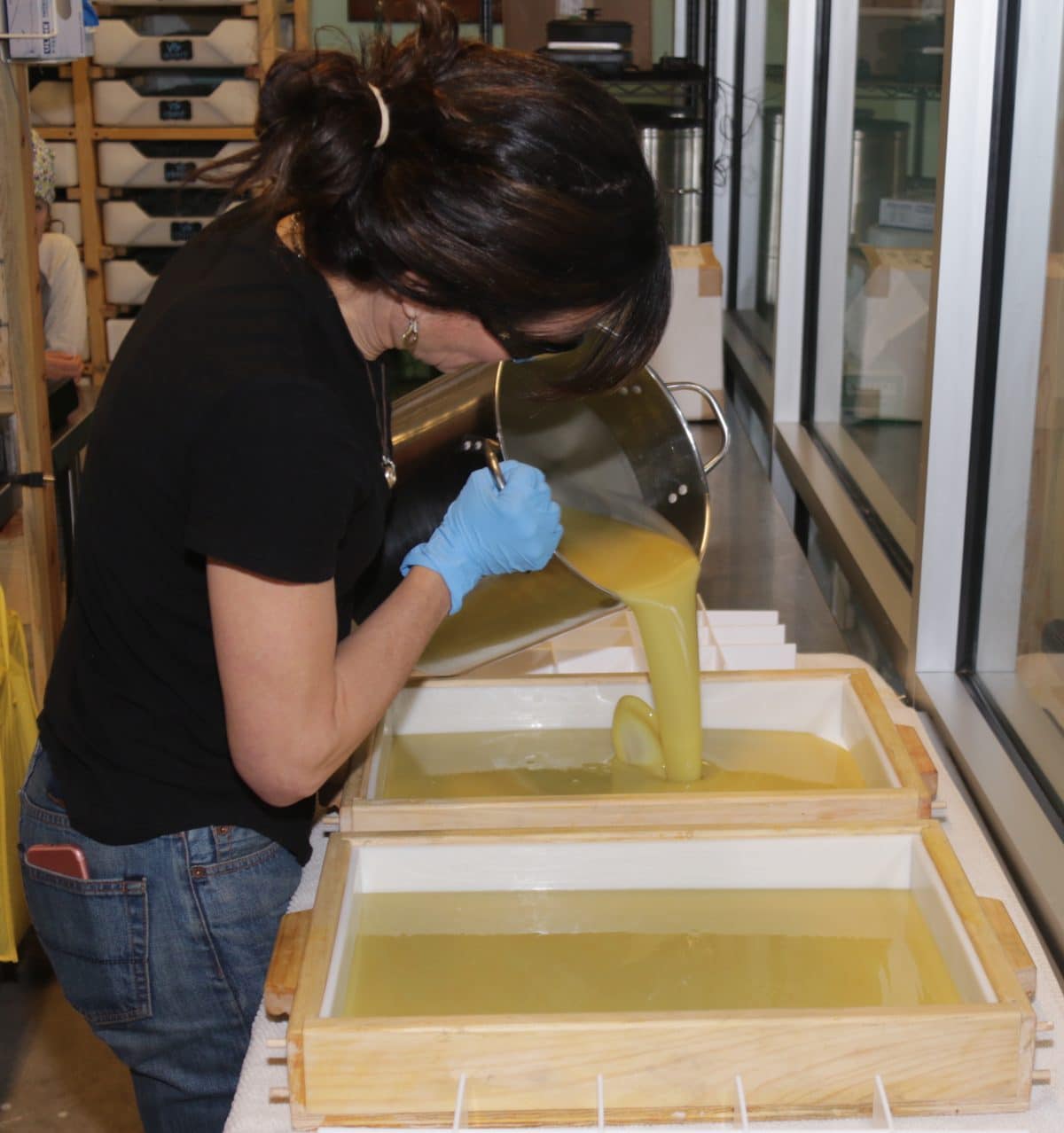 While it took a full day to get there and another to return, we spent 2 full days immersed in the Osmia lifestyle. Sarah, her family and the Osmia team were gracious hosts and filled our weekend with fun and adventure. We went show-shoeing with her sweet border collies Pixie and Alice, ate delicious healthy meals, chopped wood, enjoyed a bonfire in the snow, made a batch of Osmia Lavender Shea soap and even enjoyed bedtime reading with Sarah, her two daughters and my son. We connected over many conversations about what it takes to build a brand and a company that walks the talk. Sarah even redefined what it means to be a Beauty Hero! As you can see here – she rescued me from a slippery situation. (Always a doctor, her survival instinct is as strong as ever!) Our time together deepened my understanding of the correlation between health and beauty, convincing me that joy and meaningful relationships are the true secret to both.