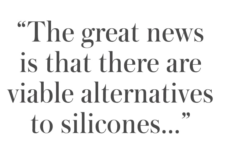 Some of our favorite clean beauty brands formulate with plant oils, waxes and new ingredients that result from green chemistry that deliver fully biodegradable alternatives to silicones, and the user experience is just as luxurious.