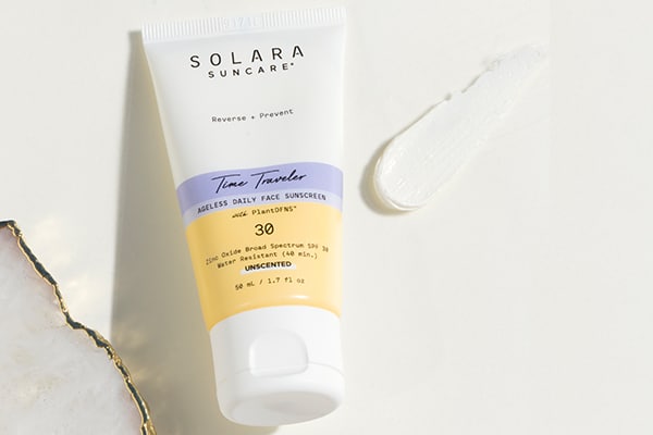 Time Traveler, an SPF 30 face moisturizer and daily sunscreen from new on the block sun-care line Solara, uses an innovative blend of minerals, botanicals and actives that melt into the skin to plump the appearance of fine lines without anything resembling a silicone. The blend incorporates copper tripeptide, ashwaganda and ceramides – not your ordinary SPF. If you’ve been seeking a swap for your Hero product that is dimethicone-free, Time Traveler might just be your match.