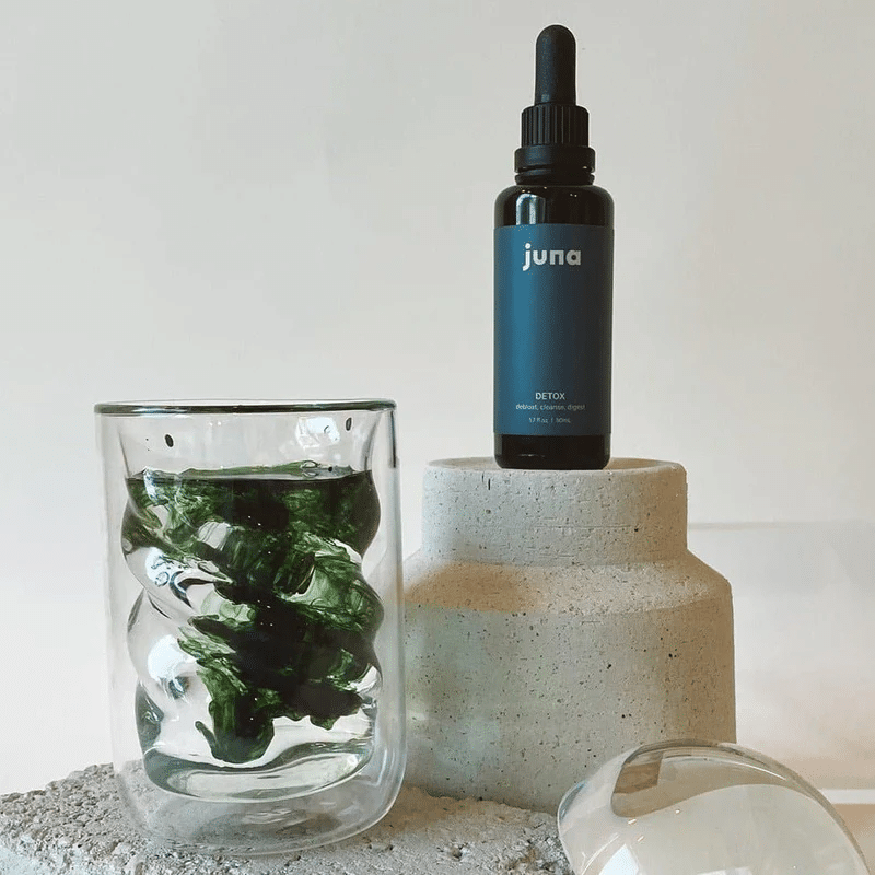 To increase this spa water’s detox property, add 1 drop of the Juna Detox Drops with chlorophyll to help promote digestion and support debloat.